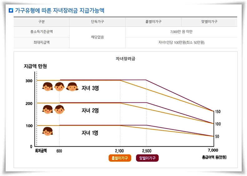 I☞ 자녀장려금 최대 지급액 자녀당 최대 100만 원 동일