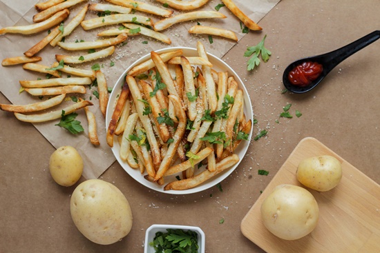 감자의 맛은 전분 함량에 따라 달라집니다. 전분 함량이 높은 감자는 메밀감자로 불리며, 부드럽고 고소한 맛이 나요. 전분 함량이 낮은 감자는 점질 감자로 불리며, 수분이 많고 부드러운 식감을 가져요. 감자를 튀기면 분질 감자는 바삭한 식감이, 점질 감자는 부드러운 식감이 나타납니다.
