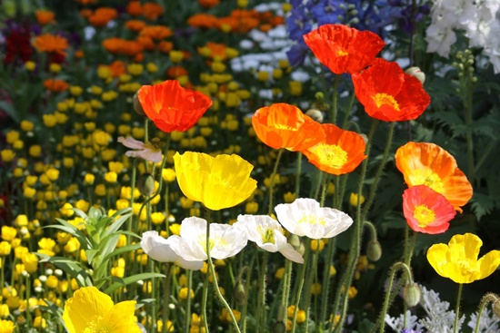 개양귀비는 빨간색, 분홍색, 흰색 등 다양한 색상의 꽃을 피워 아름답습니다.