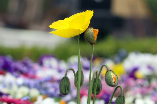 개양귀비는 양귀비와 달리 줄기와 꽃봉오리에 잔털이 있어 구분이 쉽습니다.