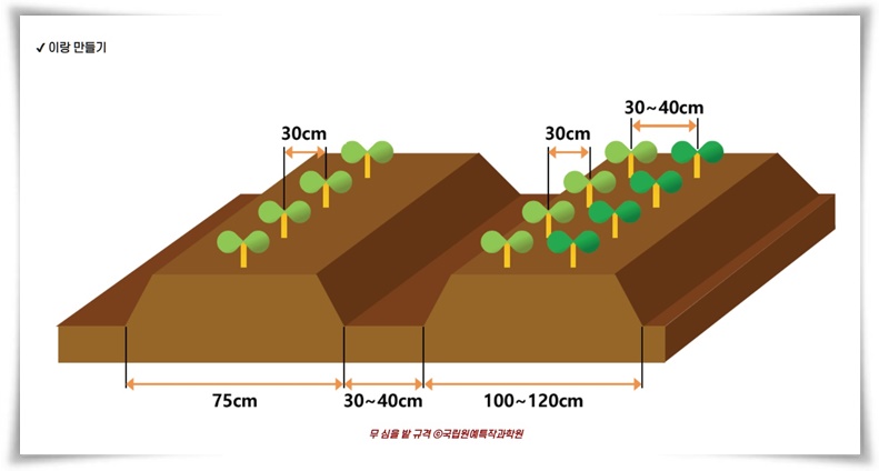 무는 줄뿌림이나 점뿌림으로 심습니다.