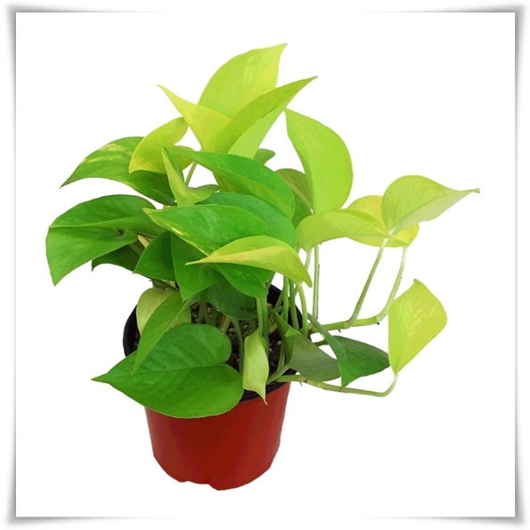 가장 일반적인 스킨답서스 종류로, 심장 모양의 잎에 황금색과 녹색이 혼합된 무늬가 특징입니다.