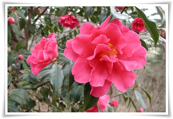 일본 동백은 주로 정원이나 공원에서 관상용으로 많이 심어집니다.