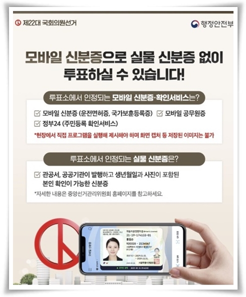 대한민국에서는 모바일 신분증이 실물 신분증과 동일한 법적 효력을 가지고 있어요.