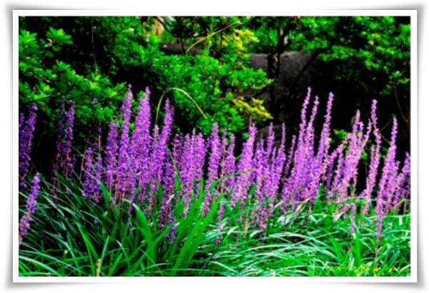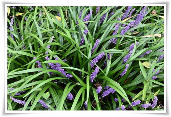 맥문동은 길고 짙은 초록색 잎은 마치 난초처럼 우아하게 늘어져 사계절 푸른 모습을 자랑합니다.