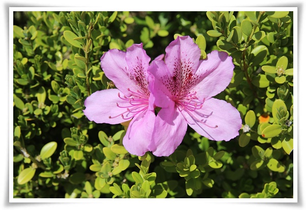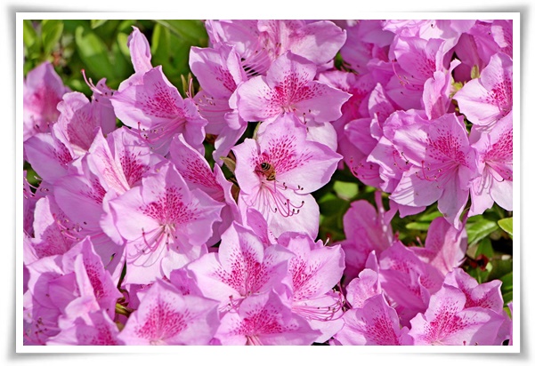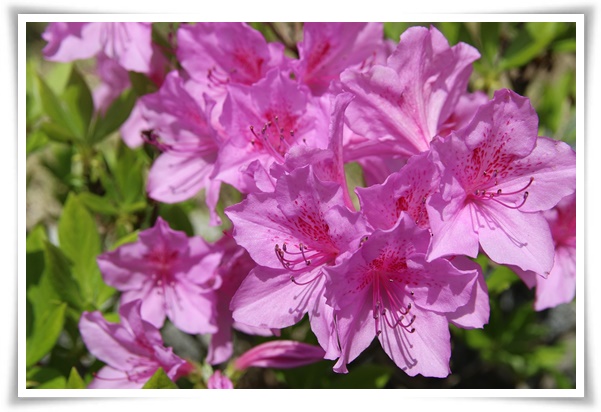 진달래와 비슷하게 생겼지만, 잎과 꽃이 함께 피는 것이 특징입니다. 꽃잎에 반점이 있는 것도 철쭉의 특징이죠.