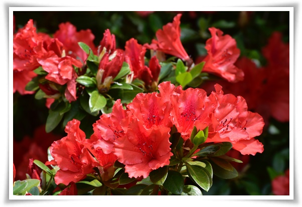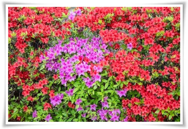 붉은색 꽃이 피는 진달래입니다. 정원이나 공원에서 관상용으로 많이 심습니다.