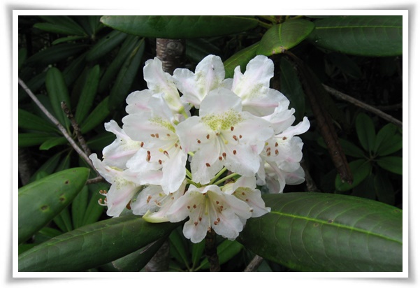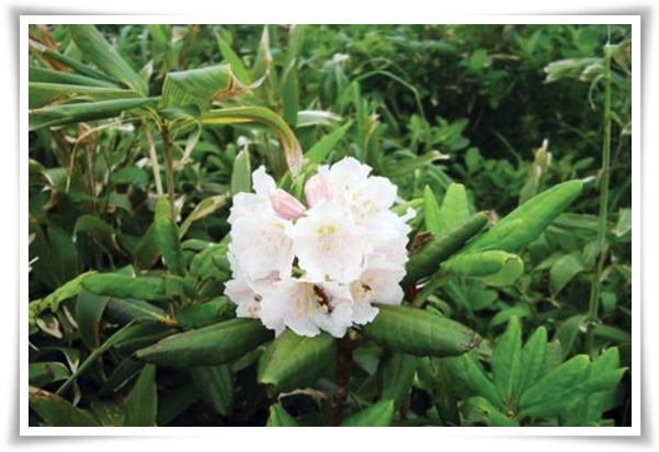 잎이 넓고 두꺼운 진달래입니다. 잎에 독성이 있어 함부로 만지거나 먹으면 안 됩니다.