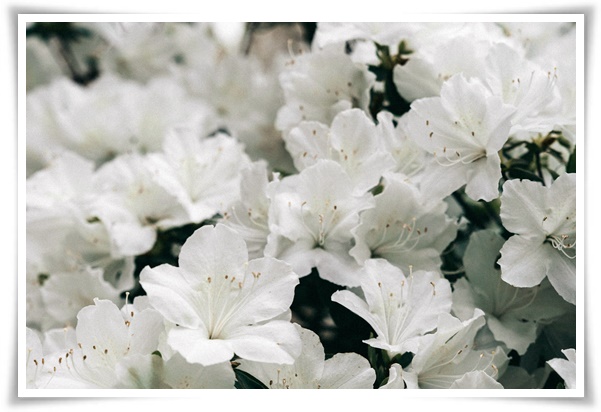 흰색 꽃이 피는 진달래입니다. 순수하고 깨끗한 느낌을 주죠.