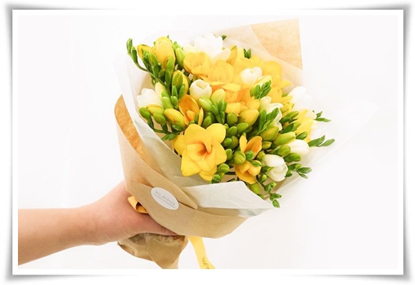 깊은 감사의 마음을 전달하고자 할 때 프리지아 꽃다발이 사용됩니다.