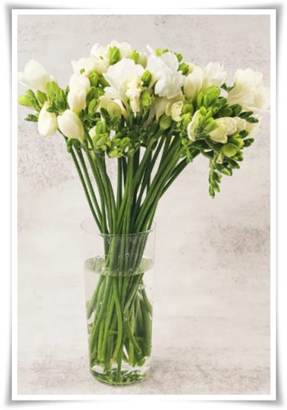 흰색 프리지아는 순수한 사랑과 진실함을 나타내어, 결혼식 부케나 특별한 순간에 잘 어울립니다.