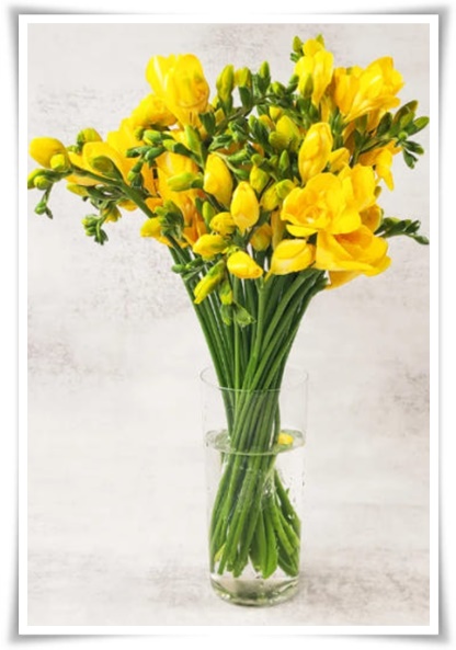 노란색 프리지아는 우정을 의미하며, 친구에게 감사의 마음을 전하는 데 적합합니다.