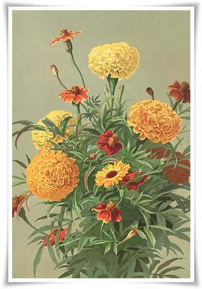 우리가 흔히 정원에서 보는 메리골드는 주로 "아프리칸 메리골드(Tagetes erecta)"와 "프렌치 메리골드(Tagetes patula)" 두 가지 종류랍니다.