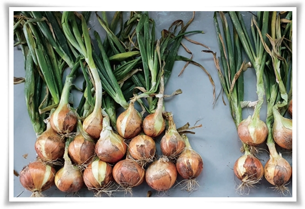 건조: 수확한 양파는 2~3일 정도 그늘에서 말려야 합니다. 이를 통해 수분이 제거되고 저장 기간이 길어집니다.